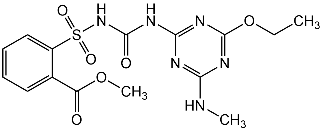| 中文化学名称 Chinese chemical names | 2-[[4-乙氧基-6-(甲氨基)-1,3,5-三嗪-2-基]氨基甲酰基氨磺酰基]苯甲酸甲酯 或 3-(4-乙氧基-6-甲氨基-1,3,5-三嗪-2-基)-1-(2-甲氧基甲酰基苯基)磺酰脲 |