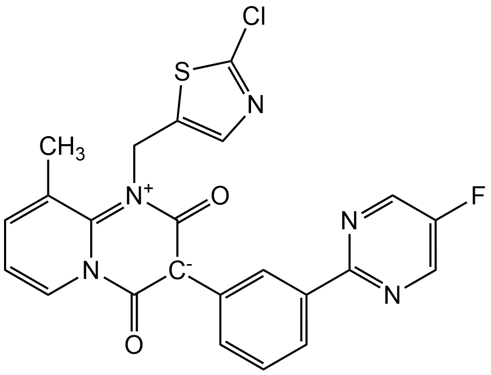 | IUPAC国际化学品标识符 (InChi) V. 1.06 | InChI=1S/C23H15ClFN5O2S/c1-13-4-3-7-29-20(13)30(12-17-11-28-23(24)33-17)22(32)18(21(29)31)14-5-2-6-15(8-14)19-26-9-16(25)10-27-19/h2-11H,12H2,1H3 |