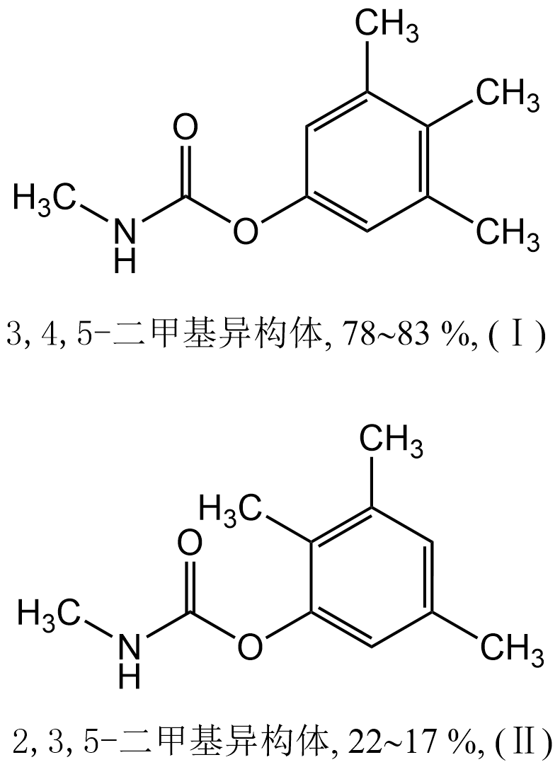 | 中文化学名称 Chinese chemical names | 3,4,5-三甲基苯基-N-甲基氨基甲酸酯(I) - 2,3,5-三甲基苯基-N-甲基氨基甲酸酯(II) |