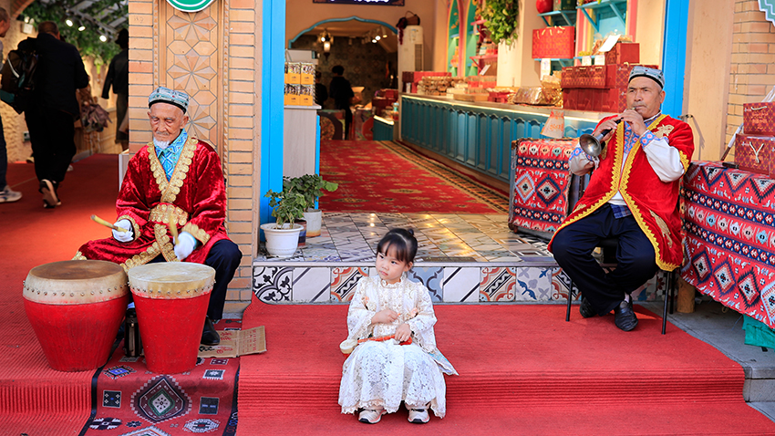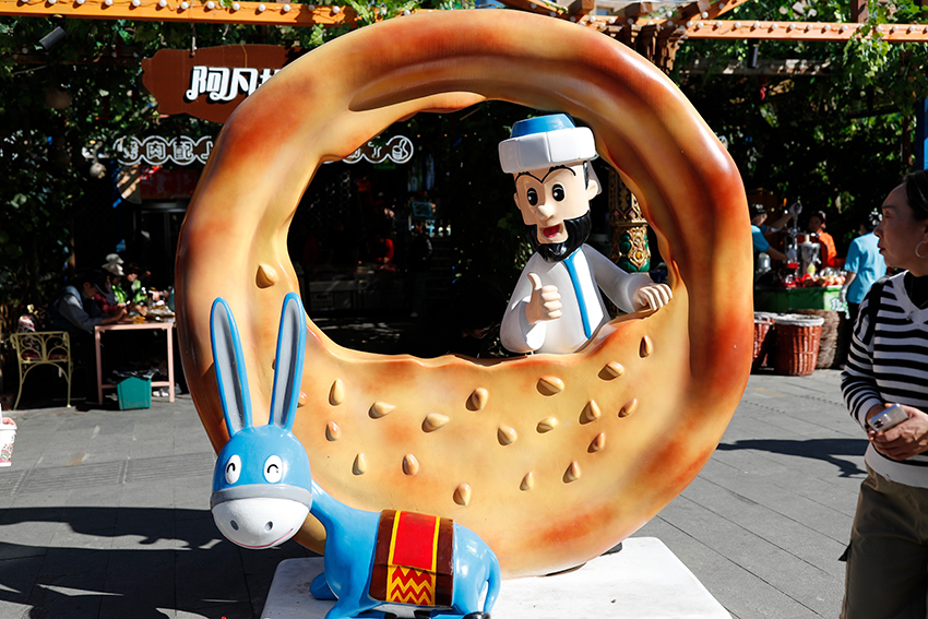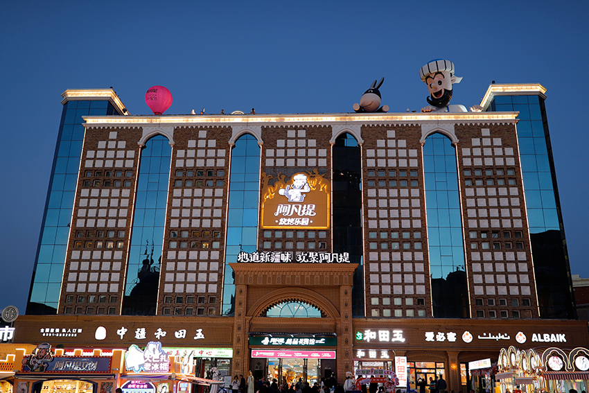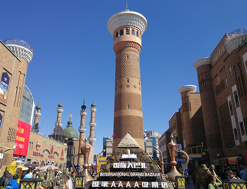 “巴扎”在维吾尔语中意为“集市”或“农贸市场”,是新疆维吾尔族自治区普遍存在的一种商品交易场所。在国际大巴扎附近,公交车站台上很难找到各路公交车的站牌,全是广告。