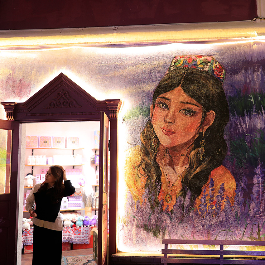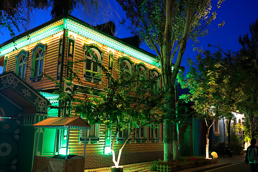 伊宁市现为新疆伊犁哈萨克自治州府所在地。六星街历史文化街区为首批国家级旅游度假区,国家4A级景区。六星街始建于上世纪30年代中期(1934~1936年),根据当时推行的六大政策(反帝、亲苏、民族平等、和平、建设、清廉)理念,由德国工程师瓦斯里规划设计。这是本次出行遇到的一个惬意的街区,夜晚商店和民宿灯火辉煌,轻歌曼舞,生意兴隆。白天马路两旁渠水潺潺,清澈柔缓,好似岁月静静流淌,诉说着无尽的故事。满大街西瓜、哈密瓜诱人,榨汁的石榴是鲜红色的。俄罗斯食品琳琅满目,价格实惠。