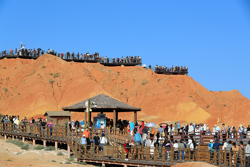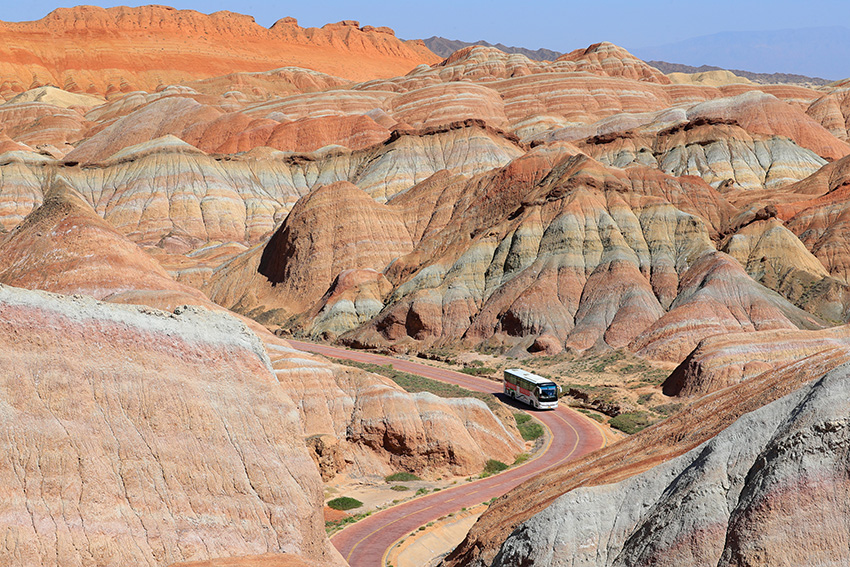 七彩丹霞的景区内观光车,单循环,返回去要重新另付车费。景区设计运作合理顺畅。