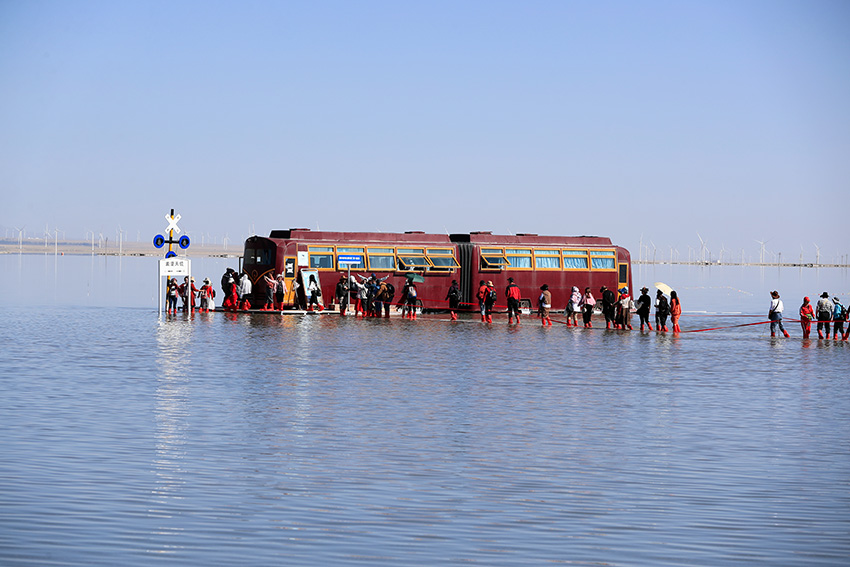 茶卡盐湖是遇到拍照最挑天气和气象条件的天空之镜景点。要晴空万里无风,最好点缀白云,空气质量要极优,前两天还不要降雨扰动湖水。途径青海湖,往返六百多公里的相对高原路途,没有拍到满意的照片真有点令人扫兴,正如网友们调侃的,“天空还在,镜子却没了”。