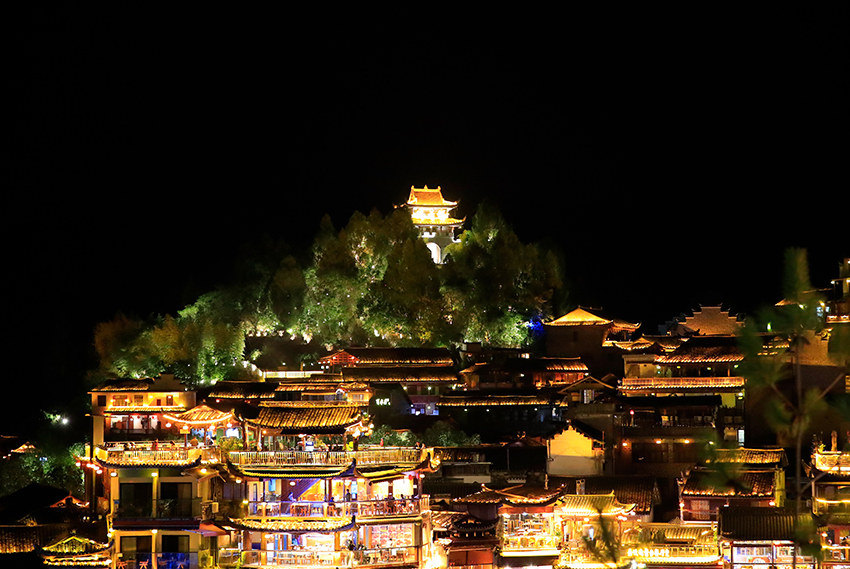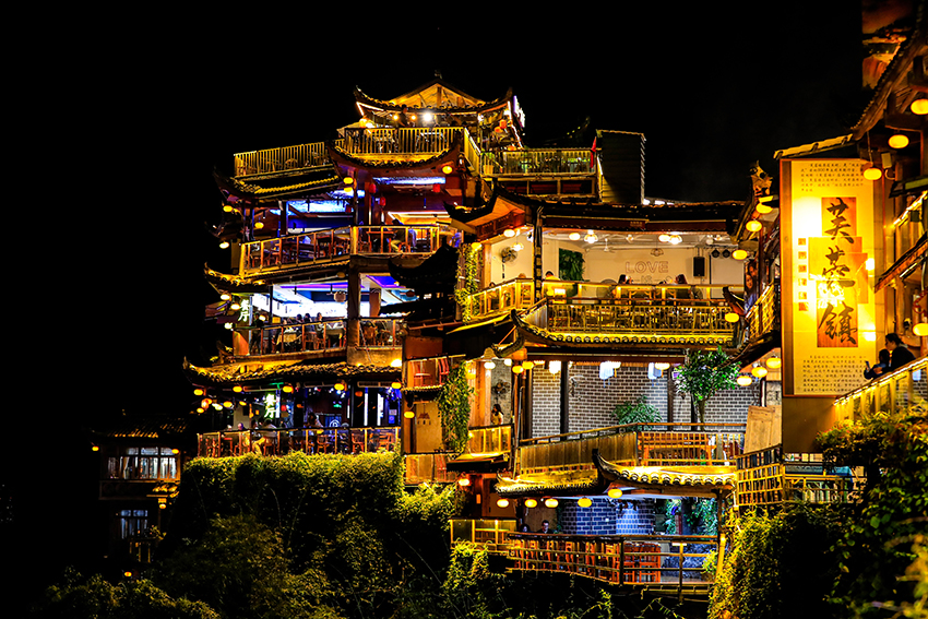 芙蓉镇遇到第一个问题是从高铁站到游客中心的公共交通问题。不像网上说的和高铁站出口标识的,出租车也很少。中巴只到芙蓉镇汽车站,到游客中心本来很近但还需要倒车,2元的六座车或包座,包座听过吗?对散客自由行极不友好。这阶段散客少,团队游观察还比较多,老外也不少。游客路经的石板路上主动搭讪,多店家拦路让游客吃饭,购物的行为似乎不文明,甚至有时让人生厌,失去了一些游兴。一个好的景区,应当把最好的拍照机位让给游客,而不是放个三脚架占上位置为了口饭吃。这样会越来越没饭吃。芙蓉镇景区游玩路线主要可分为高低两层,瀑布底下和瀑布上方。不是平坦路,逛一圈,停停走走,上上下下,几处青石板路较陡,约一个小时就可走完环线。发现至少两处要查验票。十月中旬瀑布的水量不大,整体景色一般。夜晚,三叠瀑布彩色光影变换,万家灯火,高低错落,辉煌璀璨!更是把绚丽多彩的凤凰,龙形无人机弄上天。