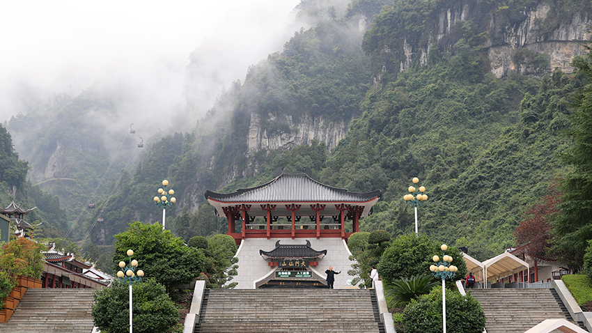 从芙蓉镇出发,乘高铁二十三分钟到张家界西站。去张家界天门山景区下车右手乘17路公交车,十一站后在张家界珍宝馆站下车,这里离天门山索道下站近。天门山索道早晨七点开。穿过市区长索道运行28分钟,中间还停顿一下,但不需要下来。A线走西线几乎是平地没有挑战性。坐森林索道上山顶,到最高观景平台,什么也没有看到,一团雾。一位小女生说,花了二百多块,只看到两个树枝枝。下行走了999级天梯,感觉还可以。到了天门洞广场也没有云开雾散。中间能看到一些山峰,但始终没有看到天门洞。发现各景点之间路牌上没有距离标识。
