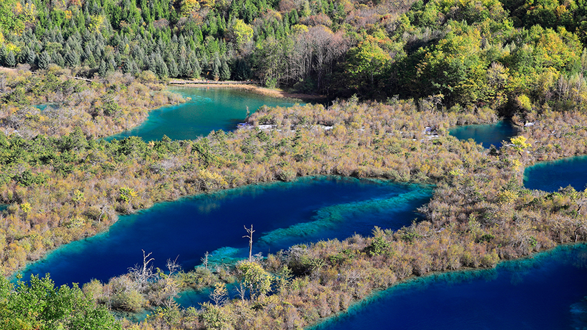7. 九寨沟秋景最佳观赏时间为十月底,前后一周时间。