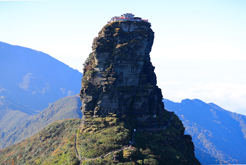 红云金顶海拔2336米,晨有红云环绕,寓意 "鸿运当头"。需攀爬陡峭石阶(部分路段需手脚并用),登顶后可俯瞰云海翻腾,感受“一览众山小”的震撼。