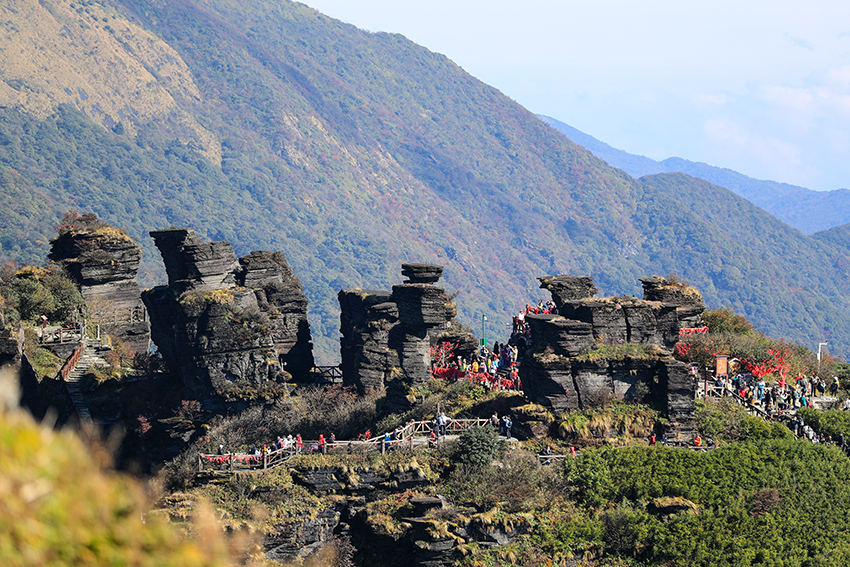 梵净山位于贵州省铜仁市的江口、印江、松桃三县交界处,是武陵山脉的主峰,以其独特的自然景观、丰富的生物多样性以及深厚的佛教文化底蕴闻名于世,是中国著名的佛教名山和自然保护区,2018年被列入世界自然遗产名录。“梵净”(梵语“清净”之意),它是中国南方最早从海洋抬升为陆地的地区之一,已有 14 亿年历史。