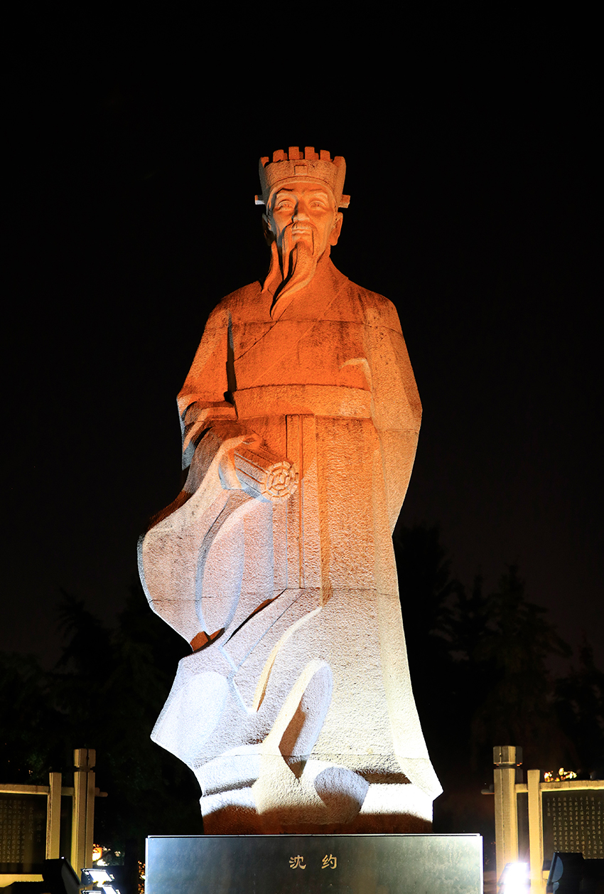 现在登临八咏楼上,已无法直接看到东阳江水,需过马路,进入八咏公园,路过沈约雕像后,才能走到江边。